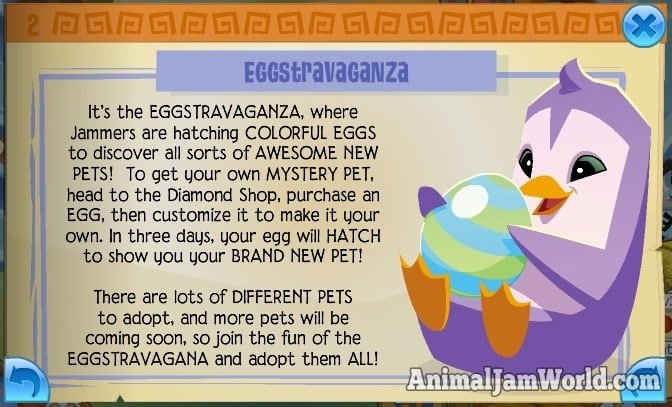 It sounds like there are lots of new pets coming to Animal Jam and they’re arriving inside of these eggs! You can get your very own mystery pet by going to the Diamond Shop and buying an egg.