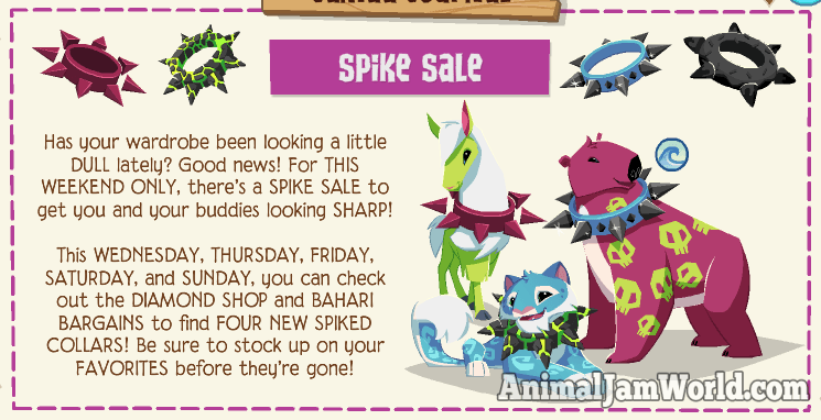 On November 21, 2018, AJHQ announced another Spike Sale. The announcement was made in the Jamaa Journal. During the Spike Sale, you can find and purchase unique Spikes that you can wear. Just like previous Spike Sales, the November 2018 Spike Sale also lasted only a few days.